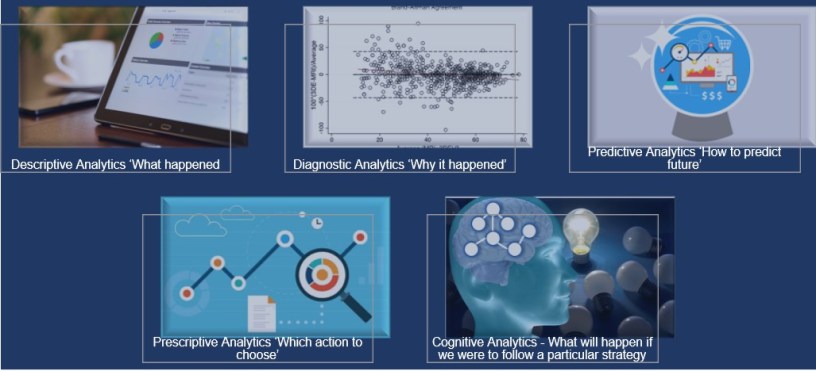 Cognitive Analysis: Cognitive analytics assist in reaching conclusions about the existing knowledge base (CRM). What might happen: if we were to execute a potential Corporate Strategy: this is the question C-suit executive often discuss in their Town-Halls.